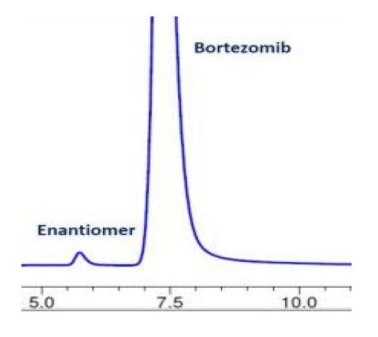 App ID: FLM-B250013 硼替佐米的手性分析 色譜柱:Chiral IND 3μm 250×4.6 mm 貨號:FMG-JY3-I04 流速:1 mL/min 檢測:UV270nm 柱溫:25°C 樣品濃度:1 mg/mL 進樣量:5 μ 流動相:咨詢 色譜圖:
