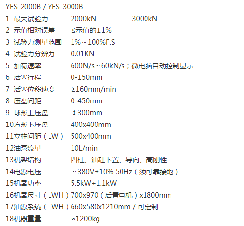 YES-2000B; 3000B / 2000kN ;3000kN;YES-B系列數顯式壓力試驗機
