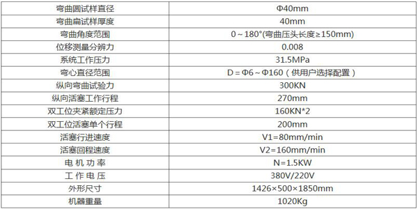 該機(jī)配置雙工位,在對(duì)試樣進(jìn)行了冷彎時(shí),一遍成型后,側(cè)向輔缸施加壓合力,使試樣過盈彎曲,消除殘余應(yīng)力,達(dá)到卸荷后彎曲角度更精確的等于180°。