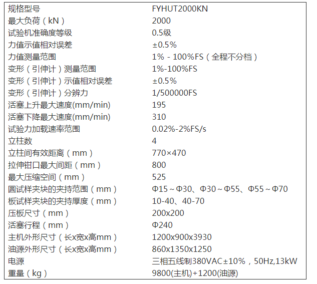 FYHUT2000KN/200噸微機(jī)控制電液伺服萬(wàn)能試驗(yàn)機(jī)采用單空間油缸上置式結(jié)構(gòu)。主油缸采用雙向差動(dòng)油缸,在一個(gè)空間內(nèi)實(shí)現(xiàn)拉壓雙向控制。